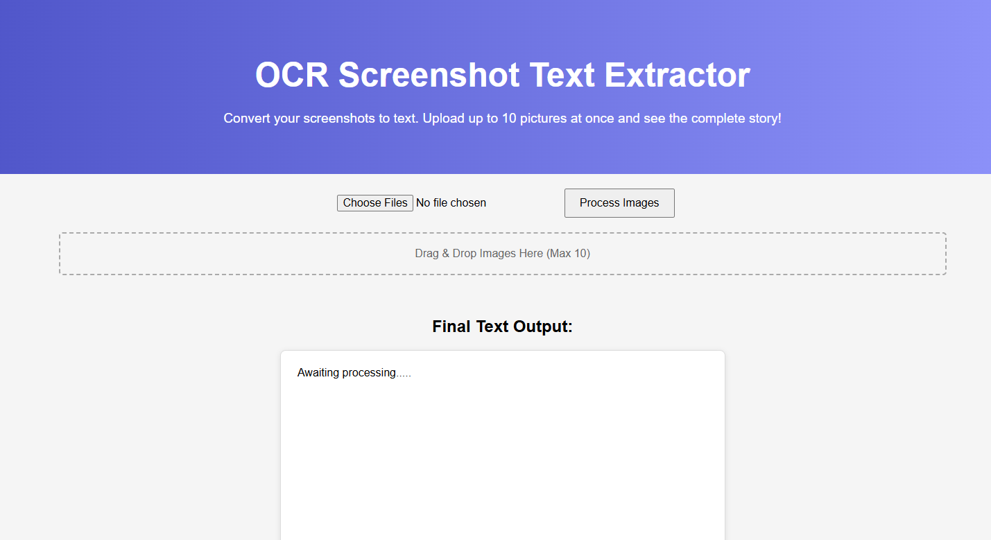 A lightweight JavaScript application that extracts text from screenshots using Optical Character Recognition (OCR).
